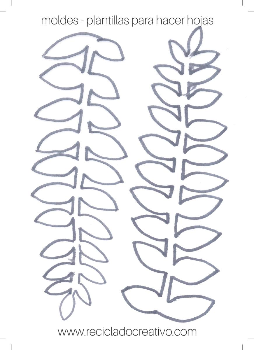 Haciendo click aquí podrás obtener las plantillas o moldes, si no tienes opción a descargarlas, siempre te queda la alternativa de hacer tus propias plantillas con unas ramas con hojas de un árbol real. Estas las realicé a partir de unas ramas de acacias.