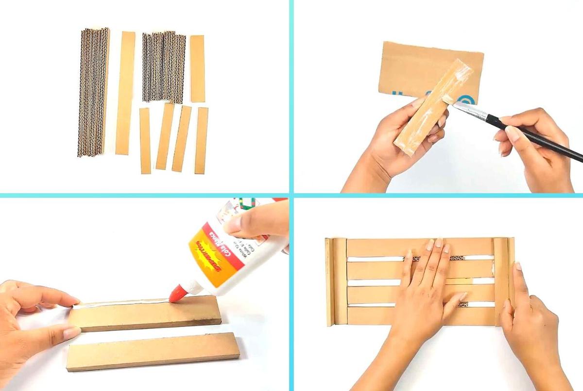 Pegar las piezas restantes de 15 x 3 cm, en los laterales de las piezas anteriores y dejar secar.