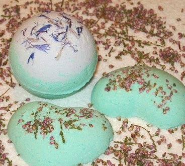 Mezclar el bicarbonato de sodio, el ácido cítrico y la leche en polvo, adicionar el aceite de almendras con el perfume seleccionado, mezclar hasta conseguir una masa homogenea, luego colocarlo firmemente en las dos mitades de los moldes, presionar fuertemente las dos mitades de los moldes, presionar durante 20 segundos luego, retire con cuidado el de arriba primero y luego la mitad inferior, dejarlos secar durante un día y luego envolverlo en papel aluminio y colocarlo en un lugar lejos de la humedad, decorar las con perlas o flores secas.