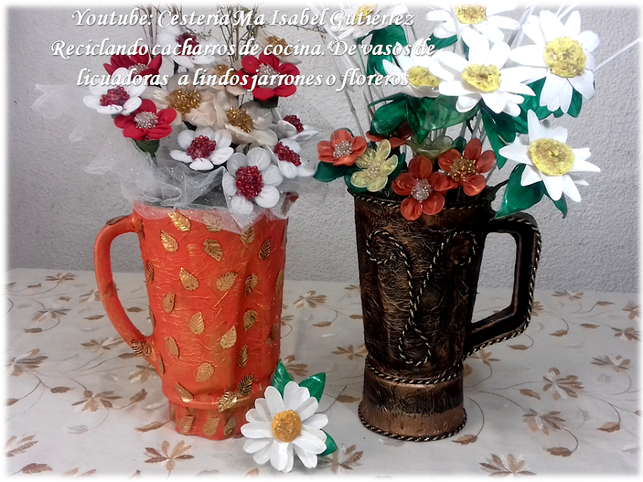 Por último, aplicamos una capa de barniz transparente para proteger de la humedad y del polvo y estarían listos nuestros jarrones para rellenar con nuestras flores favoritas.