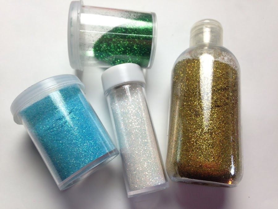 Usamos gibre o purpurina de los colores que tengas, que combinen con los colores de laca que tengas preparada.
