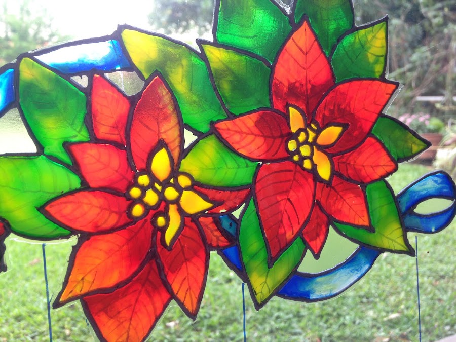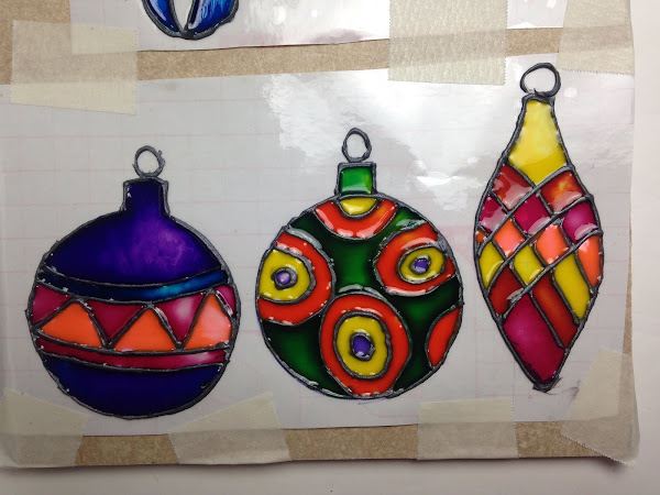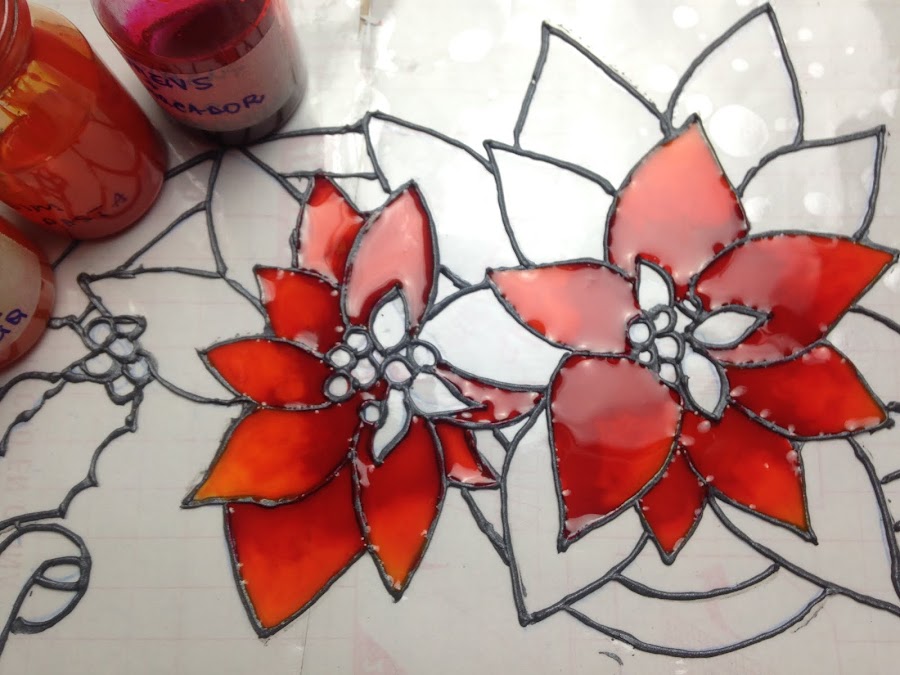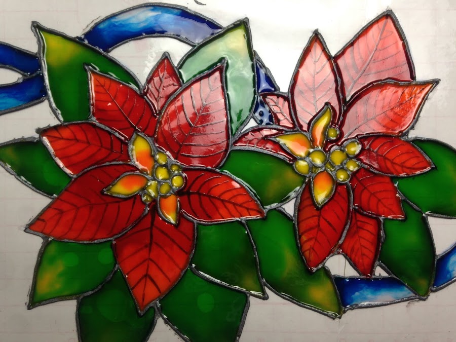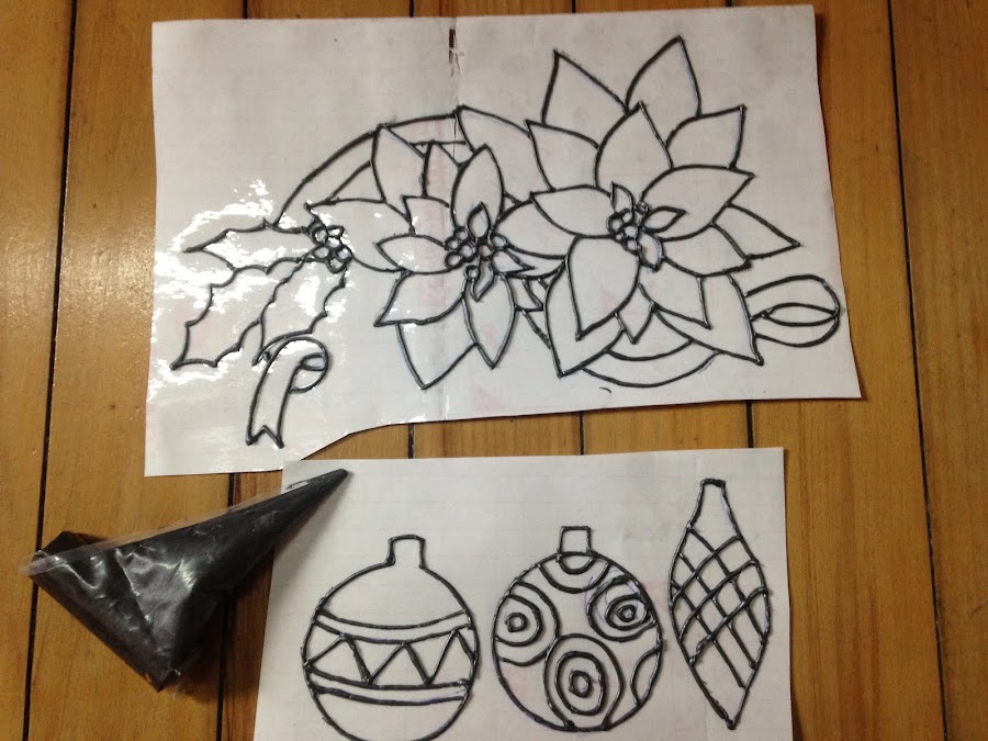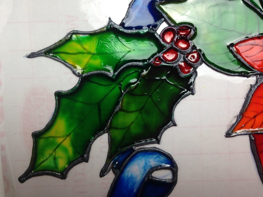 Una vez terminados los contornos se dejan secar para luego àsar a aplicar las lacas vitrales recién hechas.