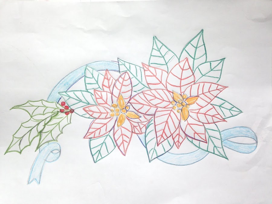 Luego viene el turno de las nervaduras de las hojas rojas y las verdes.