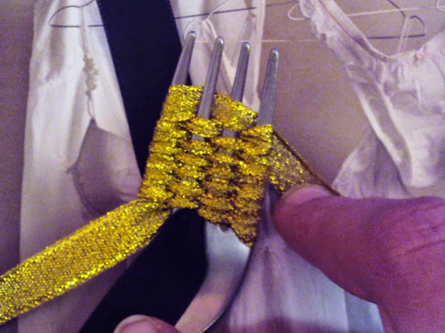 Yo elegí este para la entrada ya que me hacía gracia que fuese como una abejita, pero queda mejor con lazo de organza, ya que se puede apretar mucho mas que este de hilo dorado. Haciendo incluso una flor al abrir mas las distintas capas.