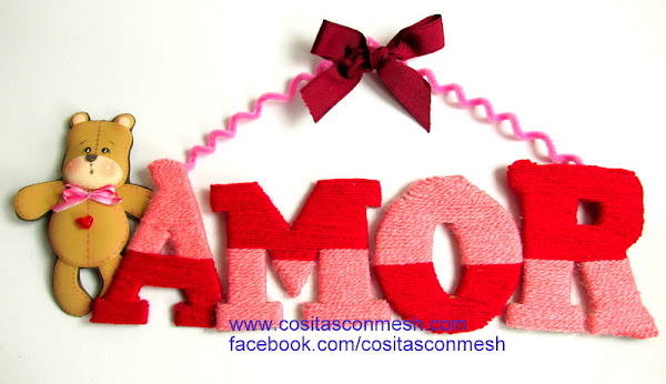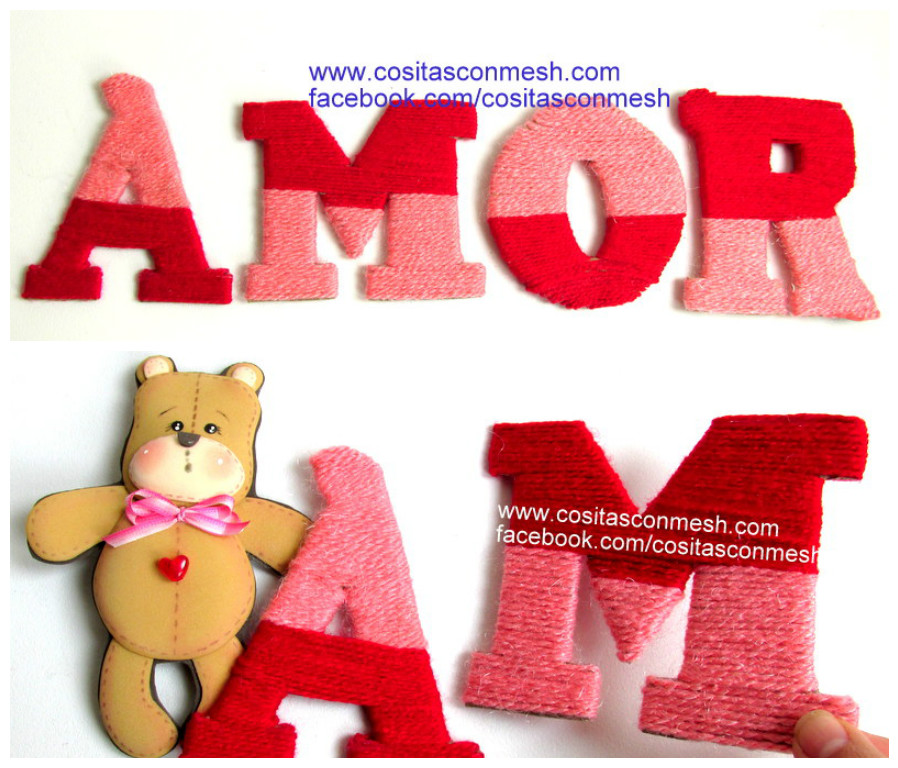 6.-Estas letras quedaran forradas con hilo de 2 colores, la mitad en rojo y la otra mitad en rosa.