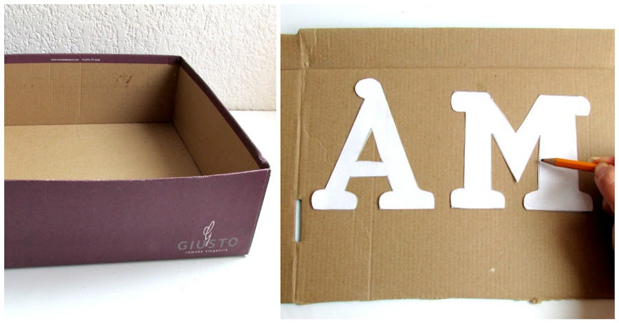 2.-Cortamos la caja de cartón, y con los moldes ya cortaditos, los pasamos sobre el cartón, y así trazamos las letras de AMOR con un lápiz para hacer nuestro letrero de san valentín.