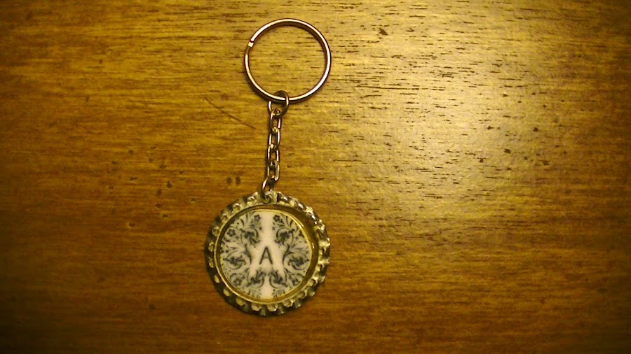Para pasar el tiempo, ahora que esta de vacaciones y preparandose para comenzar la universidad, a mi hijo se le ocurrio hacer unos imanes para la heladera, y unos llaveros utilizando unas tapitas de botellas.