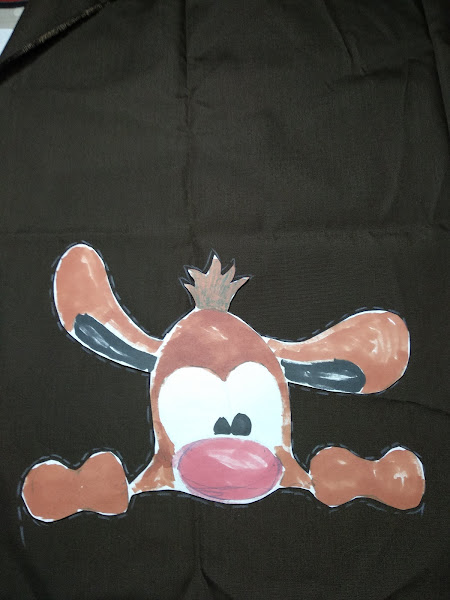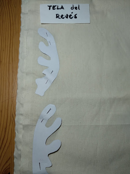En el momento que usas los patrones y los dibujas no debes olvidar que la parte visible del aplique estará en el derecho de la tela o sea que luego habrá que girarlo para poderlo coser o pegar. Si os fijáis el dibujo de este patrón está hecho en el revés de la tela con el patrón del revés también.