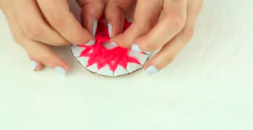 4. Cuando hayas cubierto todas las aperturas dale la vuelta al mandala y haz un nudo. ¡Listo!