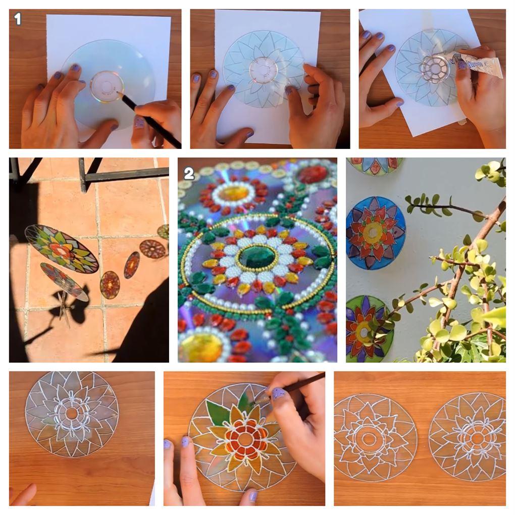 Siguiendo la onda de los mandalas con estilo vitral, los discos compactos son el material ideal para hacer este estilo de mandalas. Solo se debe retirar esa placa brillante de la superficie y dejar el disco en su forma más natural y seguir los pasos, tal y como podrás apreciar en las siguientes imágenes.2 https://www.youtube.com/watch?v=22ZZP00En-U