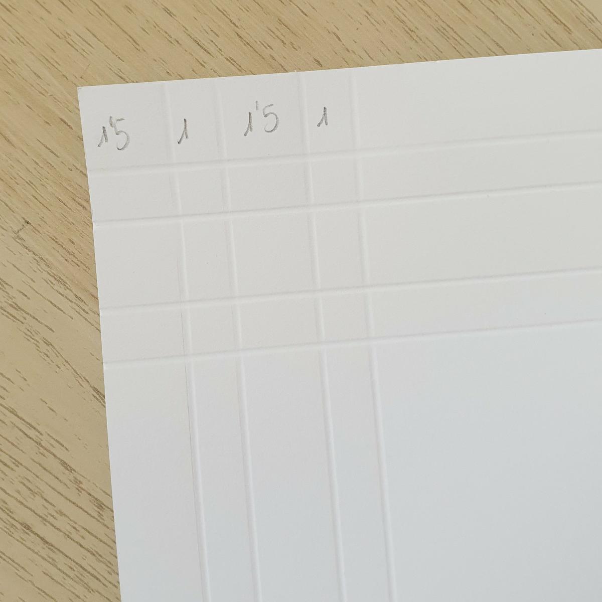 Realiza pliegues en los laterales: a 1,5 cm; 1 cm; 1,5 cm y 1 cm.