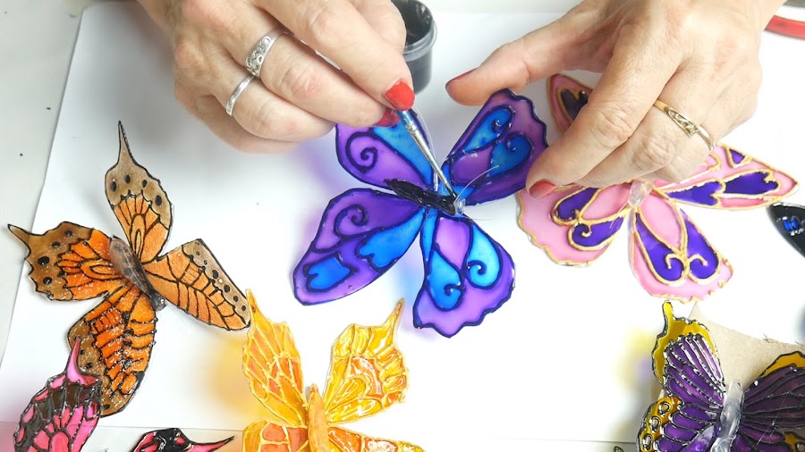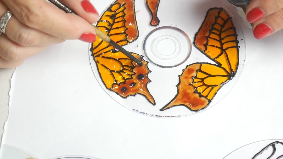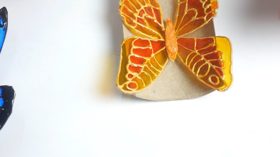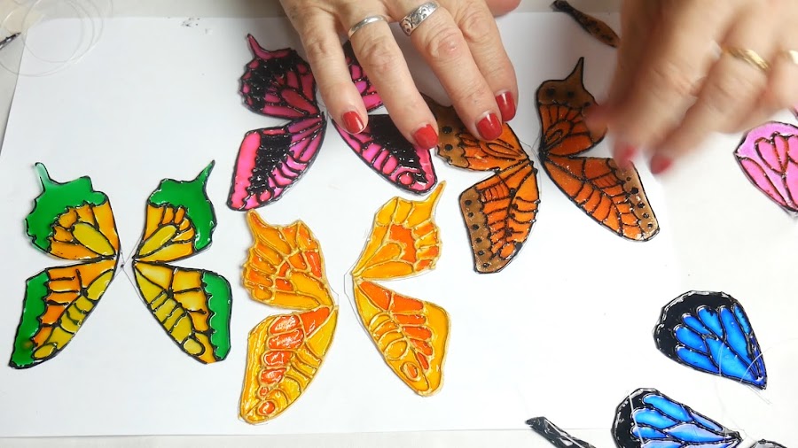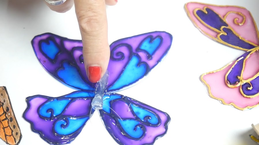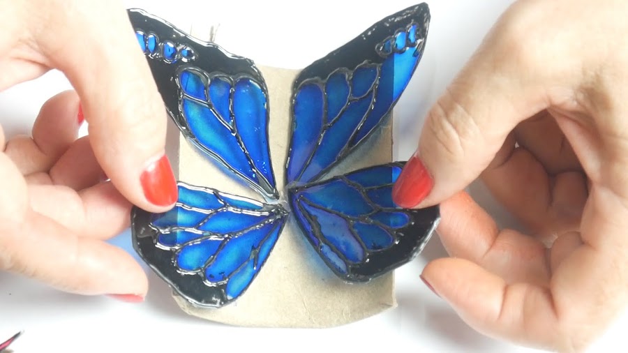 Esta mariposa la voy a pintar con la laca que enseñe a hacer con el pegamento de silicona, va a quedar una vez seca como si fuera vitrofusión.