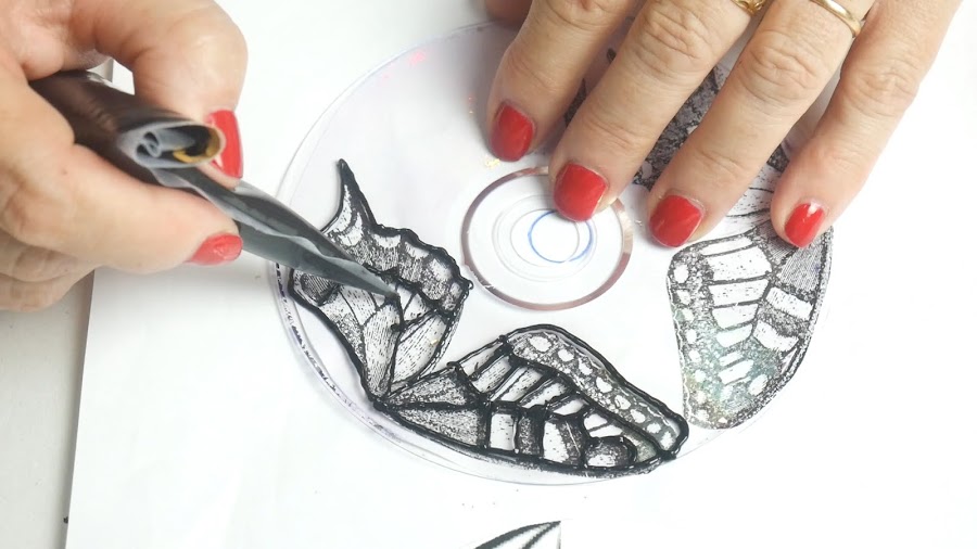 Esta mariposa tiene más detalles por eso elegí realizarla sobre DVD.