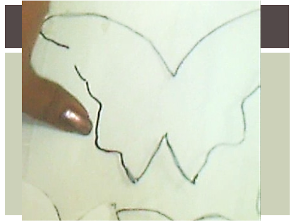 Para que las mariposas queden uniformes, vamos a dibujar, sobre papel, la mitad del cuerpo de las mariposas, solo la mitad, luego recortamos...