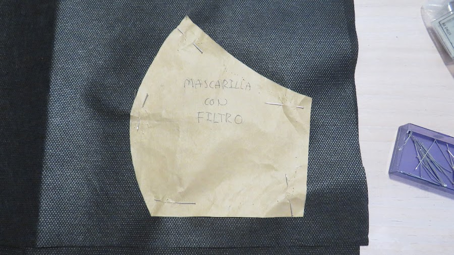 Colocamos nuestro patrón sobre la tela con la ayuda de alfileres