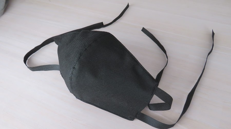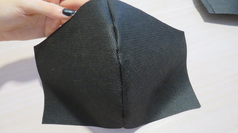 Damos la vuelta a la costura que hemos hecho y nos queda la forma de mascarilla