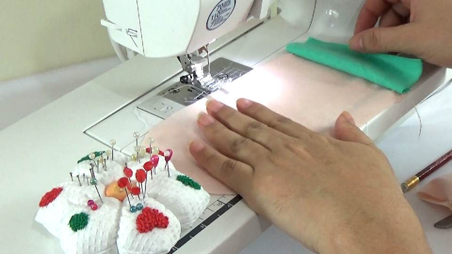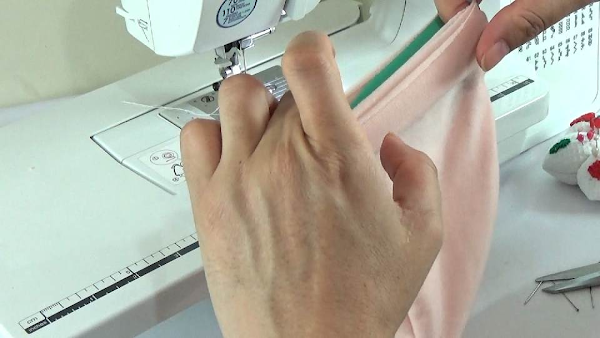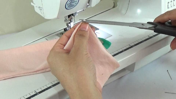 Para finalizar debemos cerrar el rectángulo que se colocara como cuello, doblarlo a la mitad y coser con una costura en zig-zag