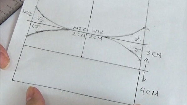Hacer la pieza delantera calcando la primera pieza del posterior y agregándole 1cm.