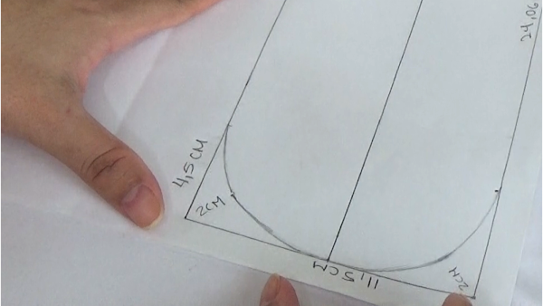 Realizar el patronaje en este rectángulo que formara dos piezas y que será el posterior del calcetin, para una mejor compresión mirar Vídeo.