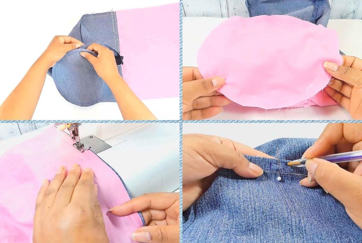Cose las bases en su lugar, la de jeans en el lado de jeans y la de tela de forro en su correspondiente.