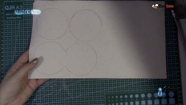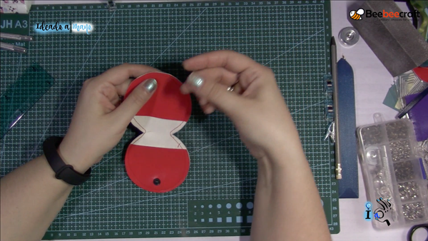 Cortamos con unas tijeras estas tres piezas. Luego, de los dos círculos cortamos un extremo, porque los superpondremos en la pieza de los dos círculos como veís en la imagen.