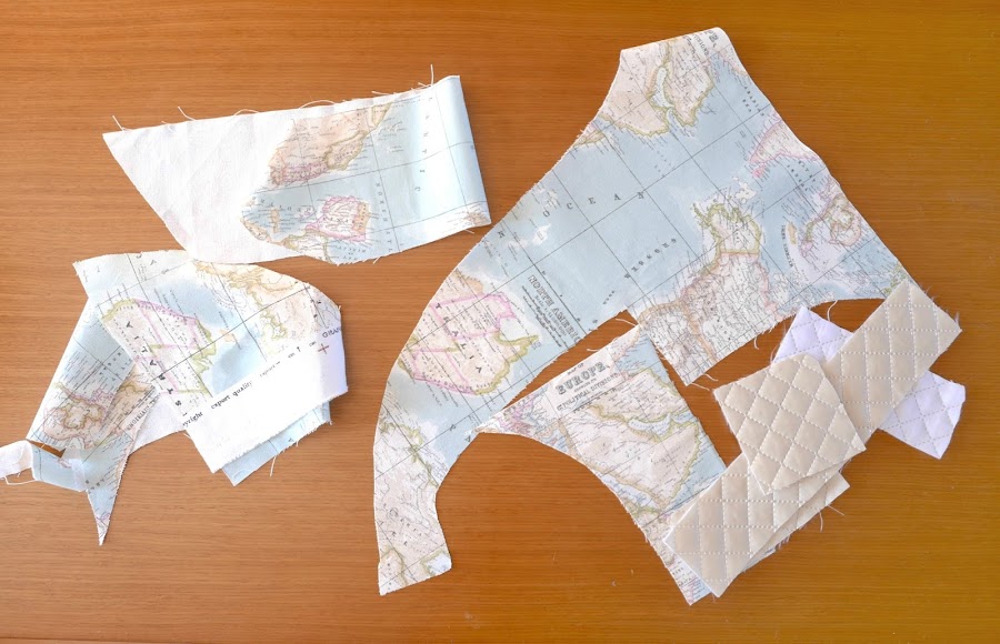 Los trozos de tejido Mapamundi son los que determinan el diseño de las bolsas, neceseres...