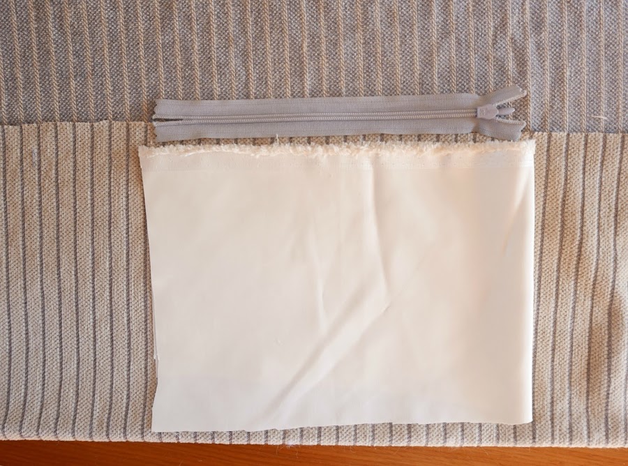 Para empezar, cosemos la cremallera, cuando todavía las piezas están sin coser.
