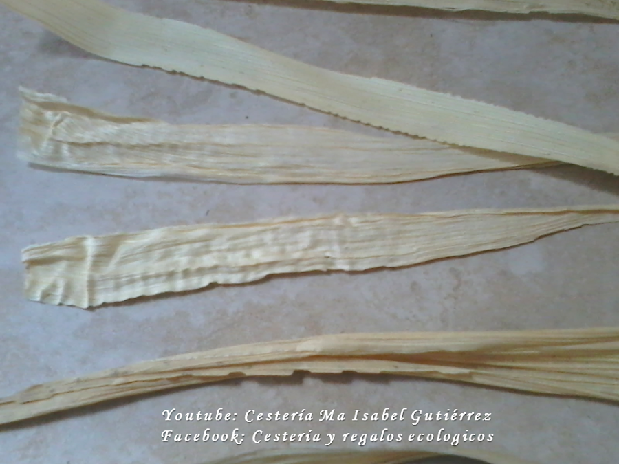 Aparte, para hacer el centro de la flor, cortamos una hoja de maíz en tiras angostas, de aproximadamente un centímetro de ancho...