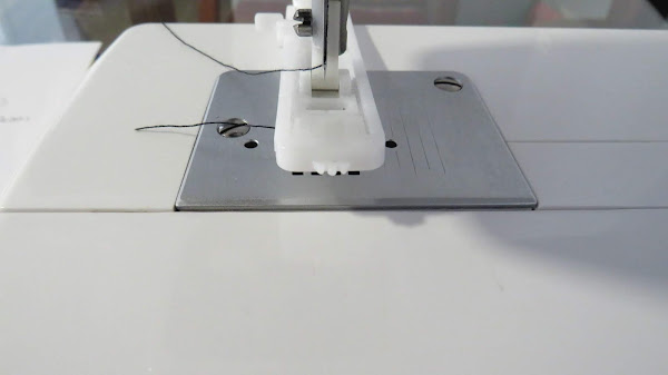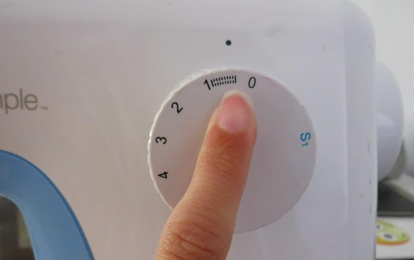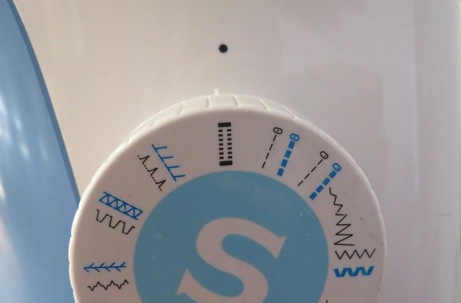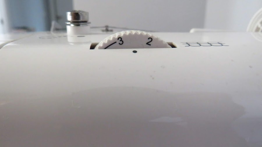 En la parte superior de la máquina, tenemos la ruleta de tensión. Vamos a utilizar una tensión ligeramente floja, entre 3 y 2