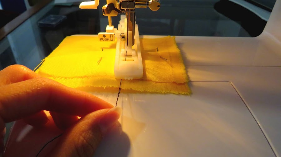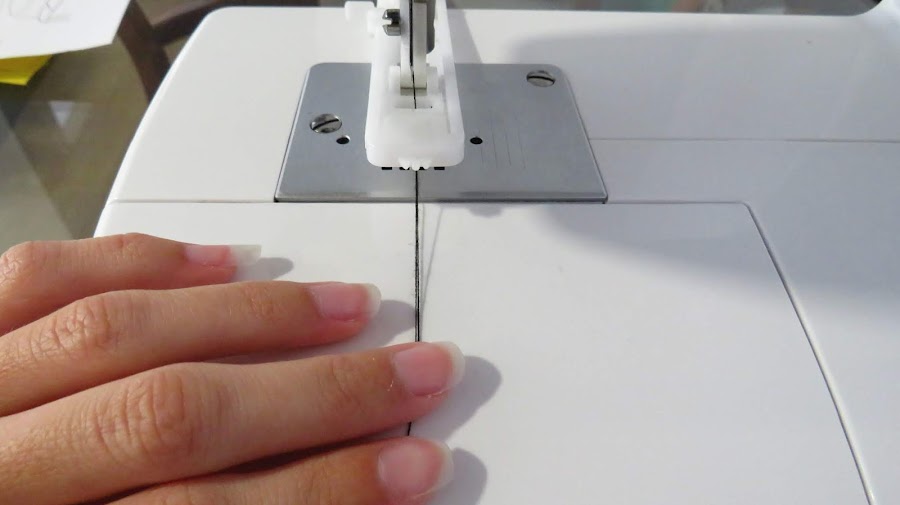 Cuando llegues al punto de inicio, deja de coser, ya que la máquina, no se detiene sola, y si no estas atento, puede formar un bulto de hilo