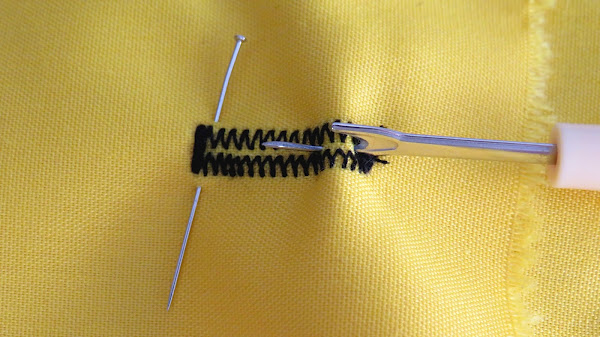 Una vez cosido el ojal, saca la labor y corta los hilos