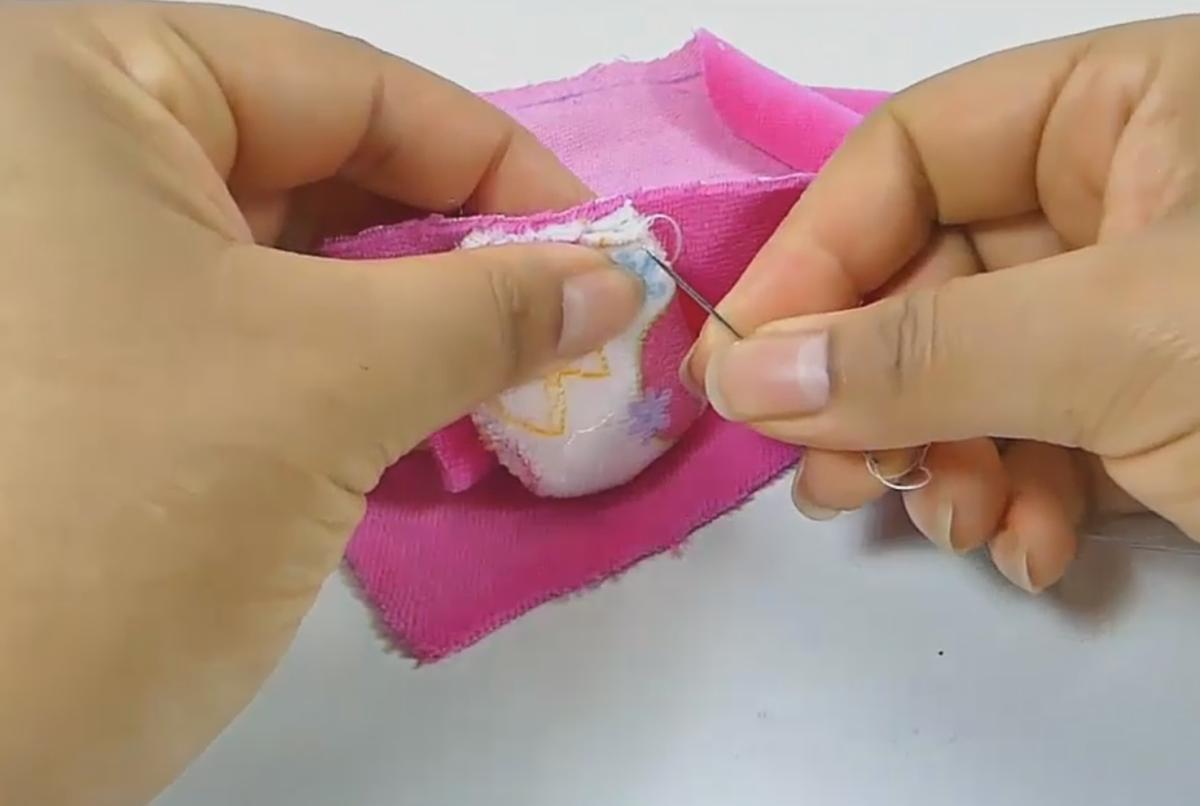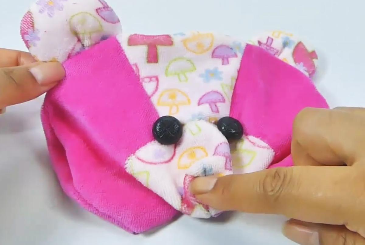 A las orejas le haces una puntada en el centro, doblándolas a la mitad, para que tengan mejor forma.