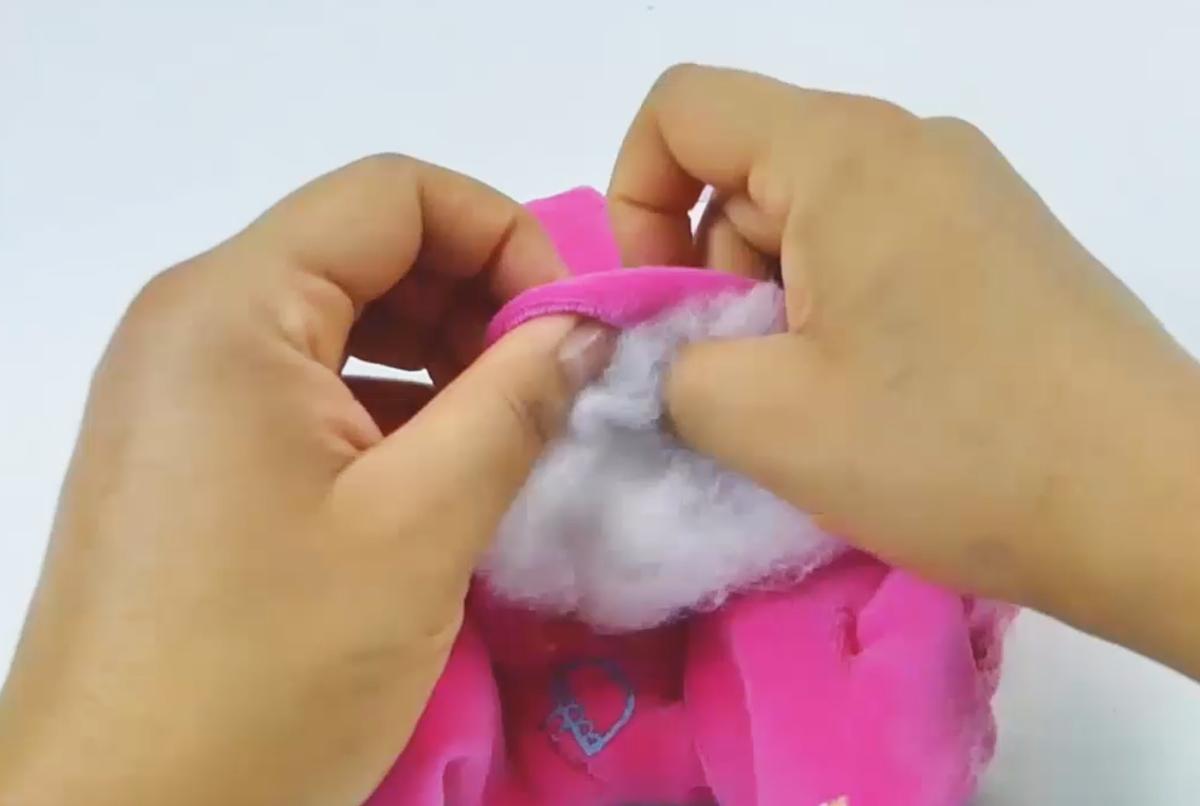 Comienza a rellenar tu osito desde las piezas pequeñas como las piernas y los brazos.