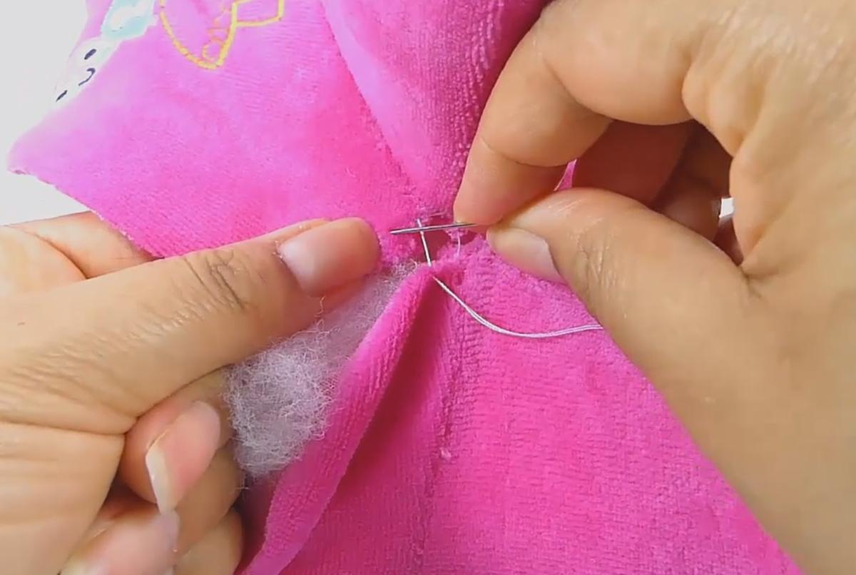 Finalmente cose a mano, usando la puntada invisible todas las uniones, incluida la cabeza.