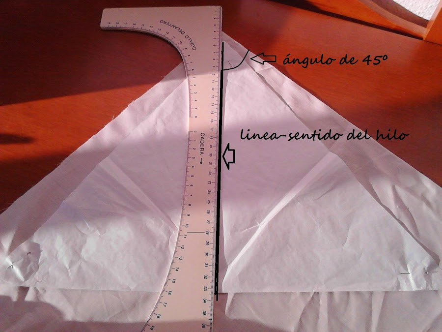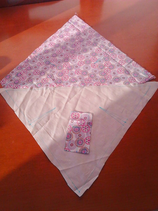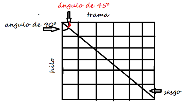 Las piezas las he cortado al sesgo. En el siguiente dibujo os explico como es: