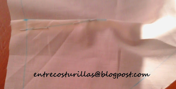 Como podéis ver las pinzas las he pintado sobre la tela, pero vienen dibujadas en el patrón, solo tenéis que marcarlas en la tela.