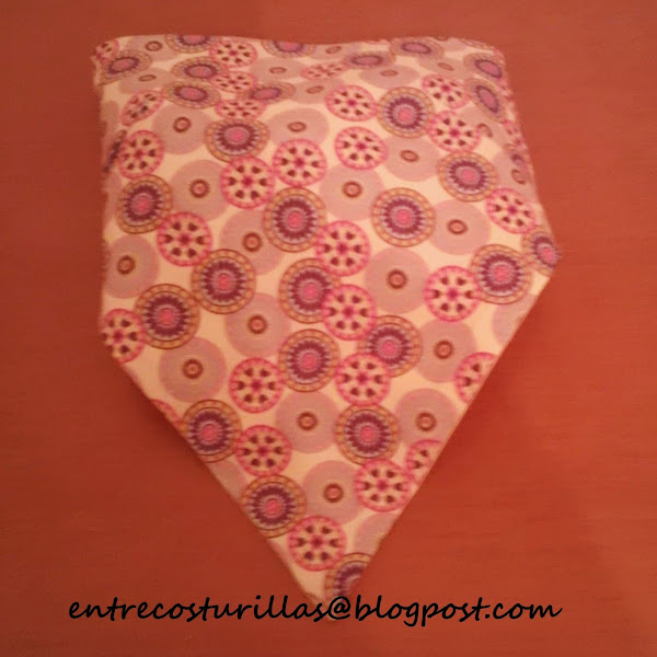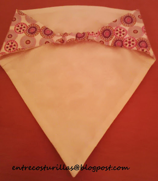 4.- Unimos la tira al pañuelo. Este paso lo he cosido a mano. Fijaros en el dibujo donde va cosido el elástico: