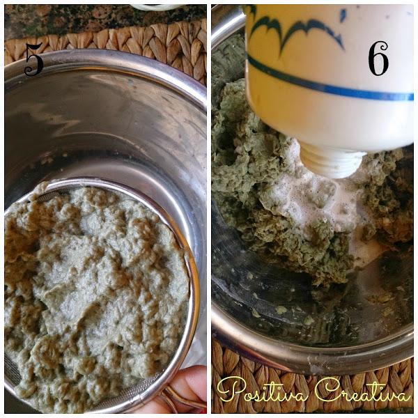 6º Añadimos cola y amasamos con las manos .Después volvemos a colar hasta dejarlo sin agua.
