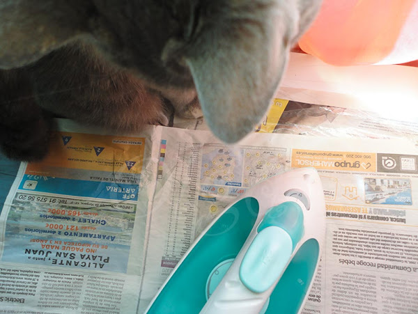 Deja que el papel se enfríe un poco, retira la hoja de periódico superior y con cuidado separa el folio de la inferior..