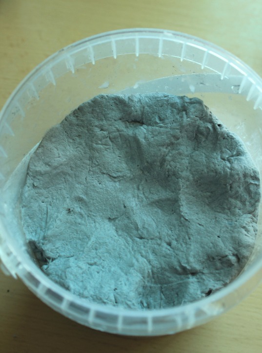 Y lista para usar! la podemos meter en un recipiente que quede muy bien cerrado o envolver en plástico, la pasta nos durará varias semanas. Una vez expuesta al aire se secará y quedará dura como una piedra, no en vano al papel maché algunos le llaman: Cartón piedra