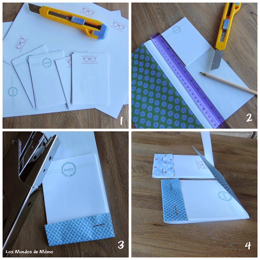Este fin de semana he estado jugando con mis hijos con papeles y tijeras, y además de muchas otras cosas, nos han salido estas bonitas libretas o cuadernos. Ideales para llevar en el bolso o como pequeño detalle para regalar, son facilísimas de hacer y es un proyecto muy divertido para los más pequeños.
