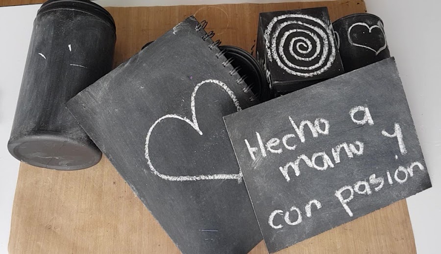 En esta entrada te enseño cómo hacerla y te doy dos opciones como ves en la fotografía: una te da una superficie con relieve y rústica y en la otra la típica superficie para escribir con tiza, a que te mueres por saber como se hace.... vamos.