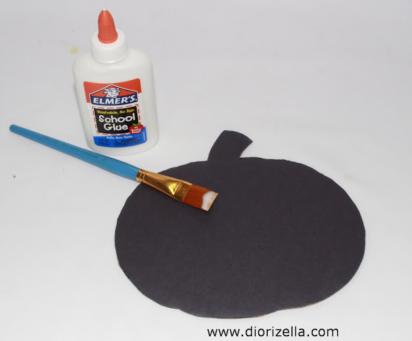 Paso 3: Aplica con ayuda del pincel una capa de pegamento sobre el papel de construcción negro y déjala secar.