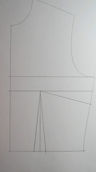 Corregimos la pinza de pecho, es decir, al doblarla, trazamos una línea recta en el costado y cortamos