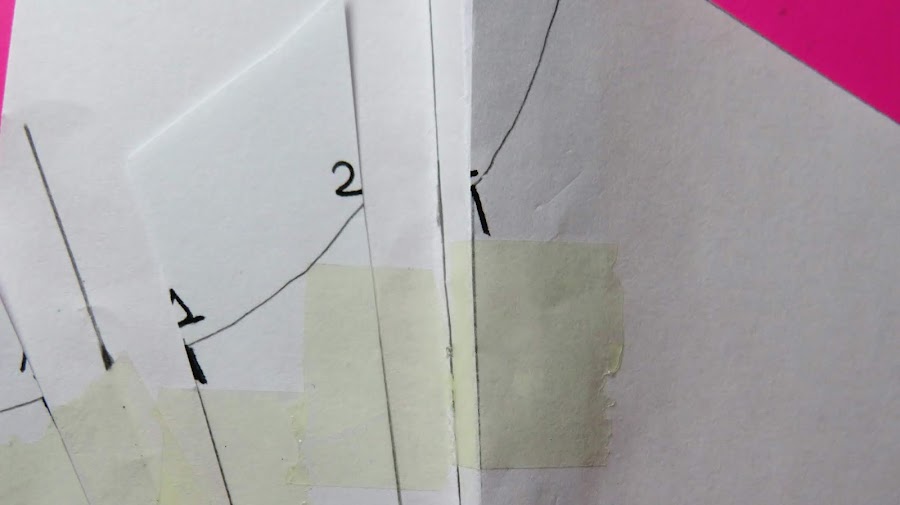 Una vez que tenemos asegurada la medida que va a haber en cada pliegue, pegamos el papel al patrón