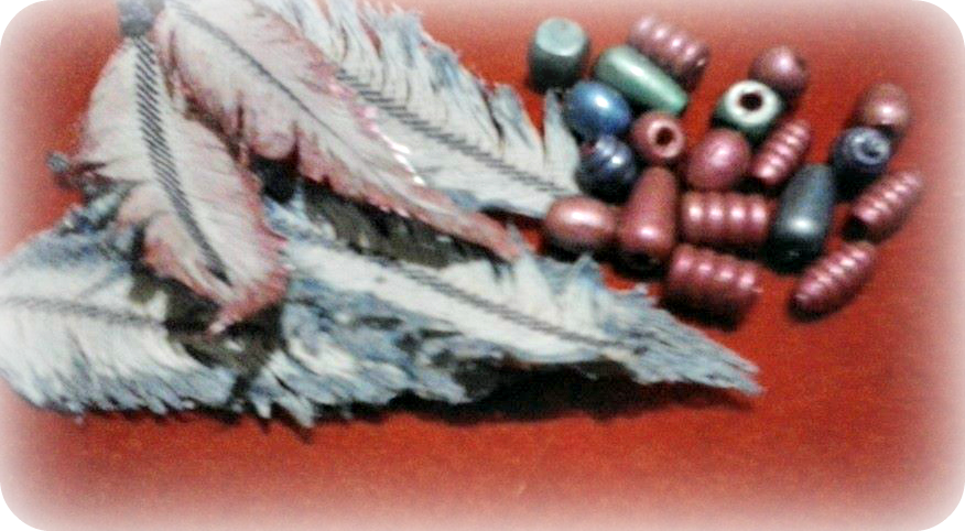 Reservo las plumas junto con las cuentas de momento , pues quiero darles color y he de hacer pruebas , quiero hacerlo con los mismos rotuladores con las que he pintado los abalorios y necesito saber como reaccionan al agua para elegir el efecto que más me guste.