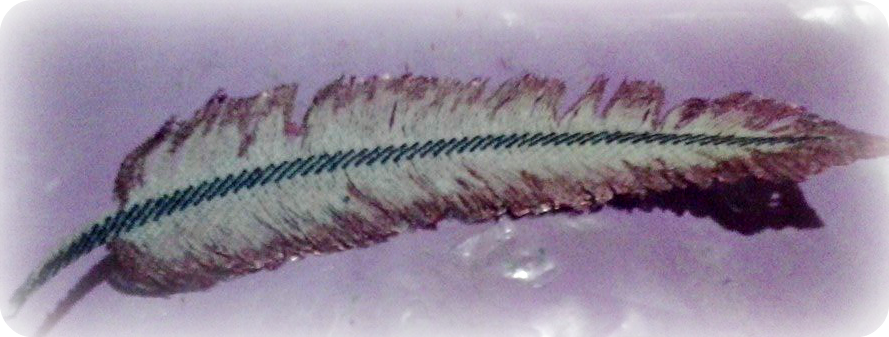 Hace un tiempo he visto un tutorial que me gustó , con hilos tipo DMC , se corta una hebra de la longitud deseada para la pluma y con hebras más pequeñas se van anudando sobre la enervadura hasta conseguir el tamaño .