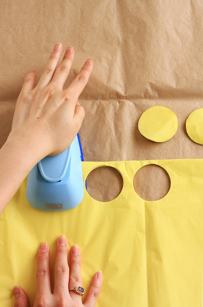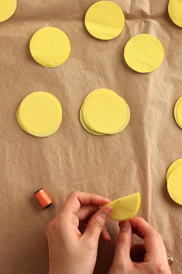 Hacemos varios círculos en el papel de seda, para que nos quede un pompón bien llenito, necesitamos 30 círculos por pompom.