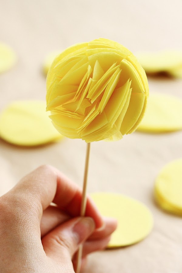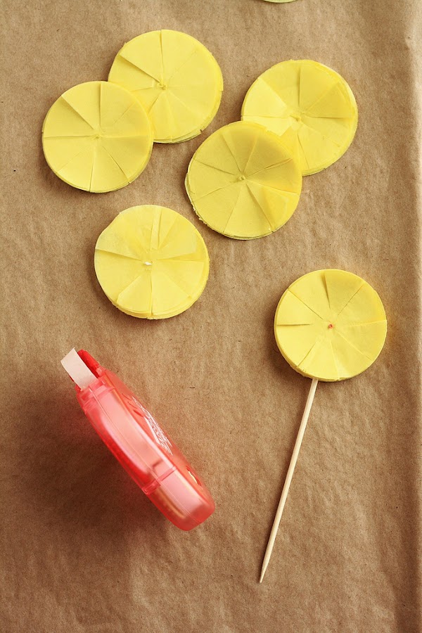 Cinta adhesiva o pegamentoPasos para hacer pompones para decorar cupcakes: