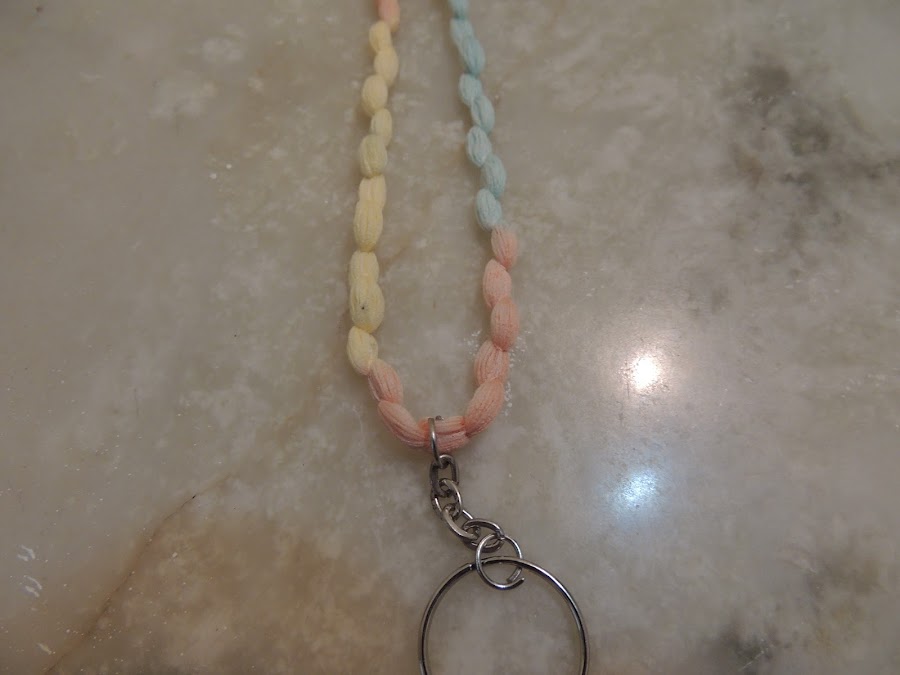 Pasamos otra tira de lana por un arito como de llavero.